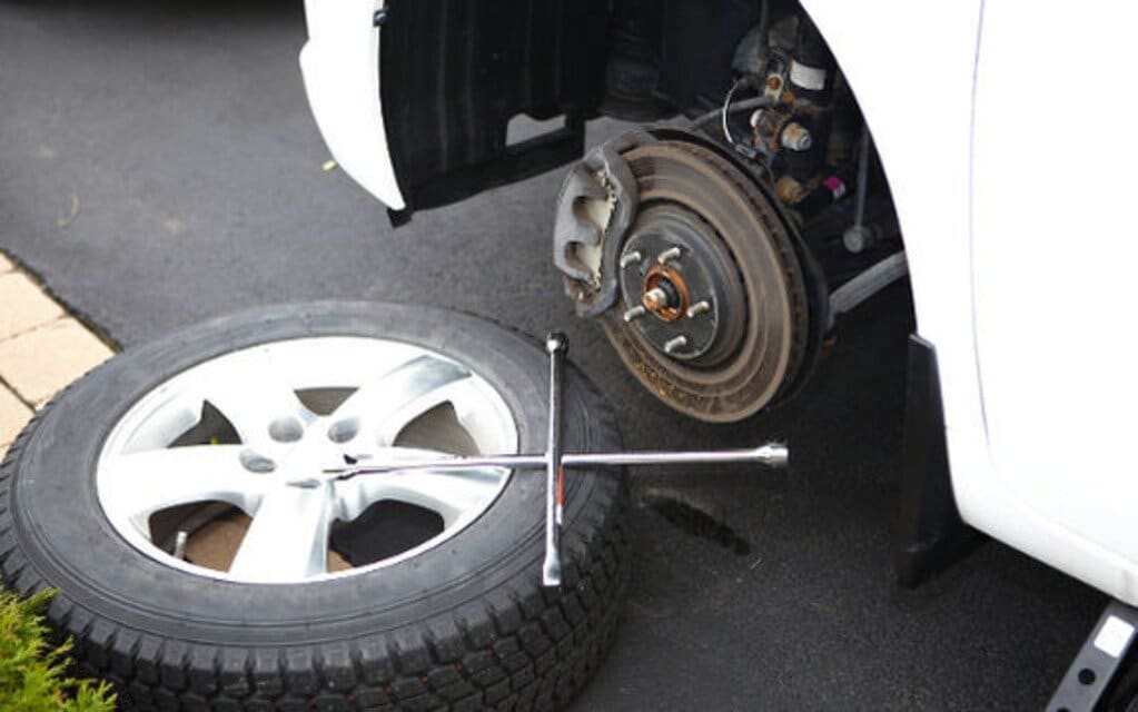 Vous aurez aussi besoin d’une clé à croix ou d’une clé dynamométrique pour pouvoir retirer la roue en question et accéder plus facilement au pneu.